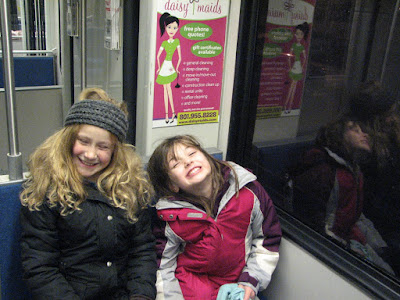 We also road the trax. A new experience for us all!!! We drove to Sandy and then road the (train) trax to Temple Square. The girls had a great time. I got motion sick. (Me and Seryn)
